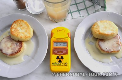 The food is quite tasty and hearty, often even abundant. It is cooked from ecologically safe products, brought from outside the Zone. Each day the cafes serve the workers and top managers of the Chernobyl Zone. Inside the cafes and near them the radiation background is the same as (and often even lower than) in New York, London or Paris.